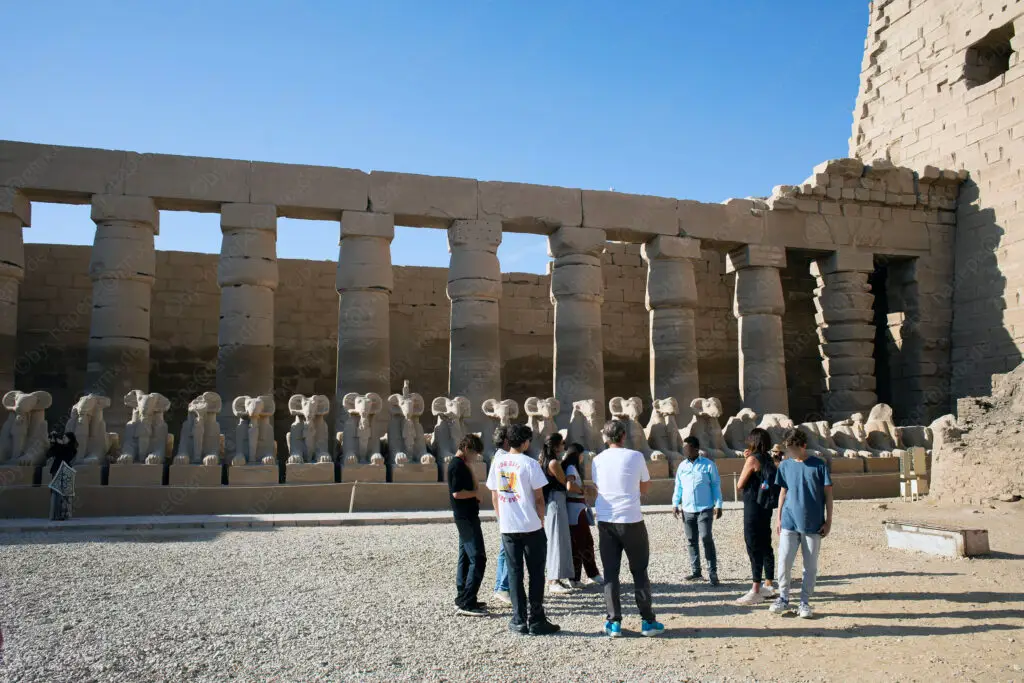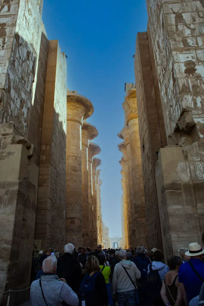 Luxor & Tal der Könige Überreste der Säulenhalle im Karnak-Tempel Große Bauwerke erfordern große Maschinen... Die Karnak-Tempel-Anlage Aha, hab alles gelesen...und ihr die rechte Nachricht auch? (auf dem Handy unten) Eine Schultafel die Rechenaufgabe noch einmal zum Größenvergleich